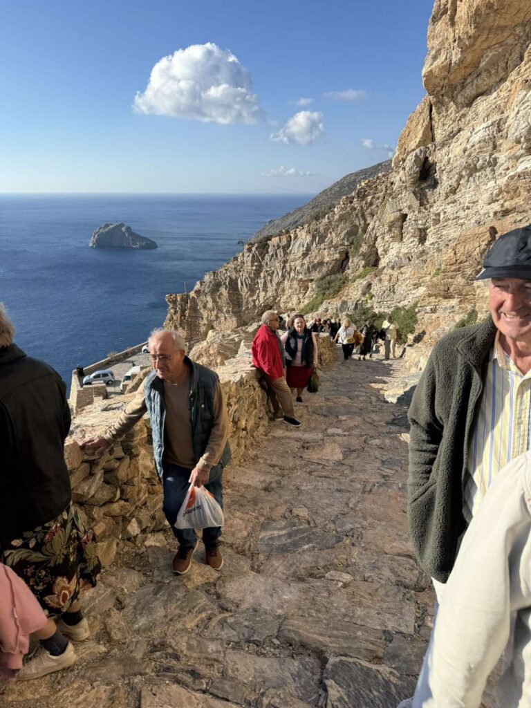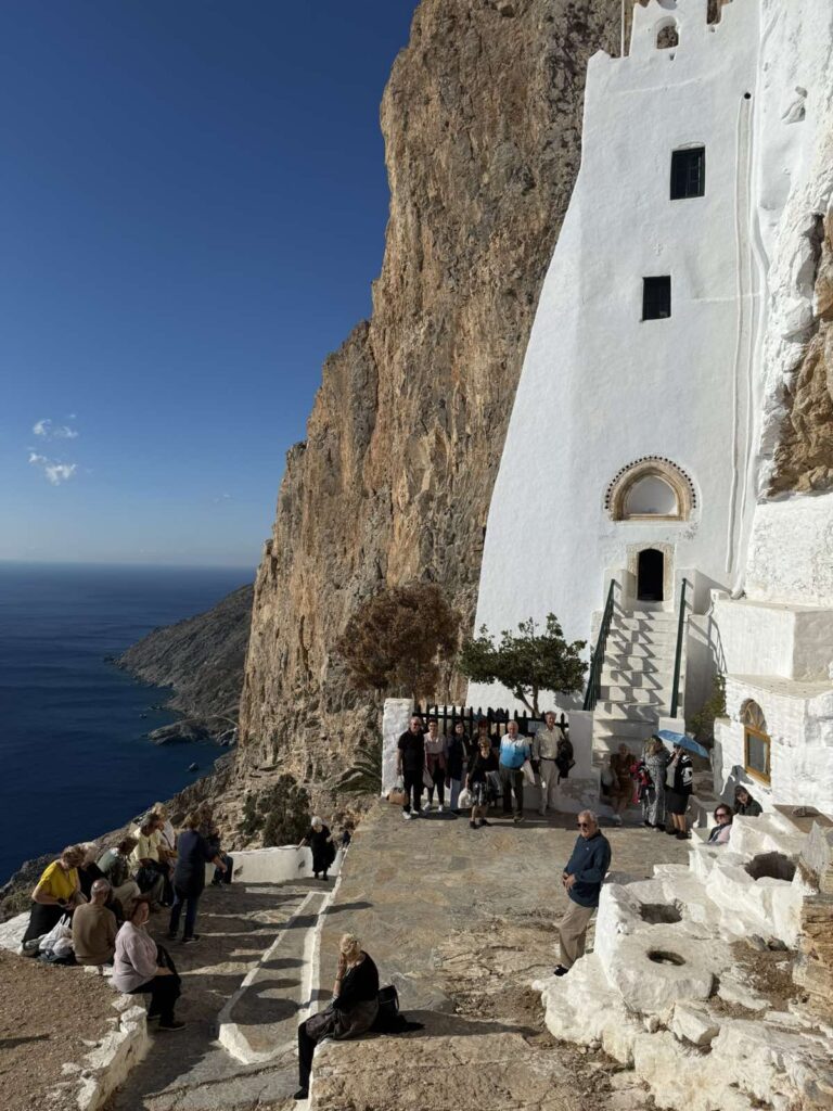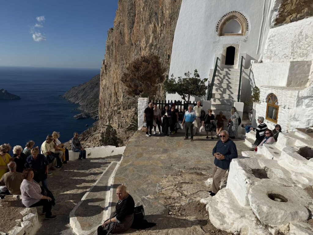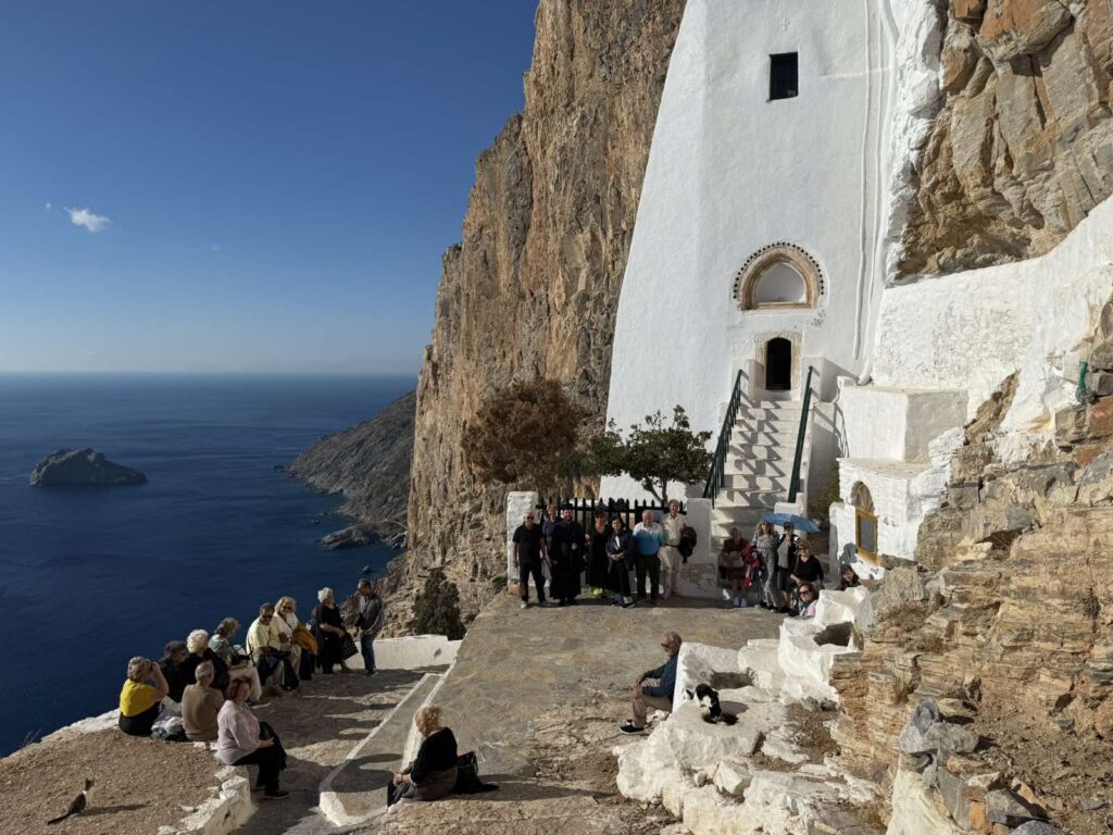 Την επόμενη μέρα οι προσκυνητές μας επισκέφτηκαν το μοναστήρι του Αγίου Γεωργίου του Βαλσαμίτη, ένα πολύ ιστορικό μοναστήρι της Αμοργού , στην κάτω μεριά της νήσου, το μεγάλο προσκύνημα της Αγίας Παρασκευής , με τον μεγαλύτερο Ναό στην Αμοργό και βέβαια καταλήξαμε μέχρι το νότιο μέρος της νήσου την Καλοταρίτισσα με την μοναδική – εξαιρετική παραλία 🏝️ του νησιού. Να ευχηθούμε η Υπεραγία Θεοτόκος να μας σκεπάζει και να προσφέρει σε όλους Προσκυνητές και ενορίτες μας πλούσια την βοήθεια και ευλογία της!!!