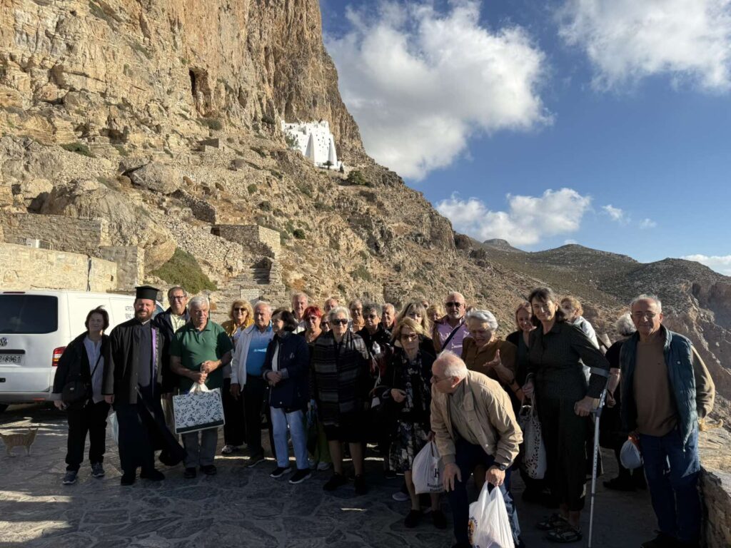Με ιδιαίτερη χαρά πραγματοποιήθηκε το μεγάλο προσκύνημα της ενορίας μας στο νησί της Αμοργού στην Παναγία την Χοζοβιώτισσα . Την Δευτέρα 29 Σεπτεμβρίου ξεκινήσαμε με πούλμαν από τον Ιερό Ναό της ενορίας μας για το Λιμάνι του Πειραιά κ από εκεί με καράβι στην πανέμορφη νήσο της Παναγίας μας στην Αμοργό . Την επόμενη , Τρίτη επισκεφθήκανε τα χωριά Λαγκαδά κ Θολάρια, εκεί είχαμε την χαρά να προσκυνήσουμε σε Ιερούς Ναούς των Χωριών και να ξεναγηθούμε από τους εφημέριων των Ναών , πατέρα Κωνσταντίνο και πατέρα Ειρηναίο.