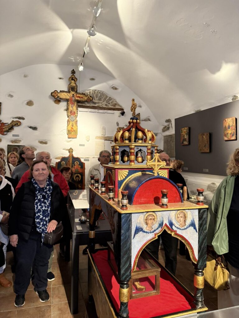 Την επόμενη, Τέταρτη το πρωί ξεκινήσαμε για το κορυφαίο προσκύνημα μας στην Ιερά Μονή Παναγίας Χοζοβιώτισσας , το τοπίο εκπληκτικό, και η ανάβαση πραγματικά ήταν μια μοναδική εμπειρία για όλους τους προσκυνητές μας!! Μας υποδέχθηκε ο πολυσέβαστος αδελφός της Ιεράς Μονής πατέρας Σπυρίδωνας με τους συνεργάτες του, τελέσαμε την παράκληση της Παναγίας μας και στην συνέχεια ξεναγηθήκαμε στο Ιστορικό Μοναστήρι και το μουσείο της Μονής από τον πατέρα Σπυρίδωνα. Στην συνέχεια οι προσκυνητές είχαν την ευλογία να κεραστούν στο αρχονταρίκι της Μονής την καθιερωμένη ρακί . Μετά την Ιερά Μονή επισκεφθήκαμε την χώρα που είναι και πολύ παραδοσιακό χωριό . Μας ξενάγησε ο πρόεδρος του χωριού κ Δεσποτίδης σε δύο μεγάλα μουσεία, το Εκκλησιαστικό με μοναδικά εκθέματα και το Λαογραφικό μουσείο.