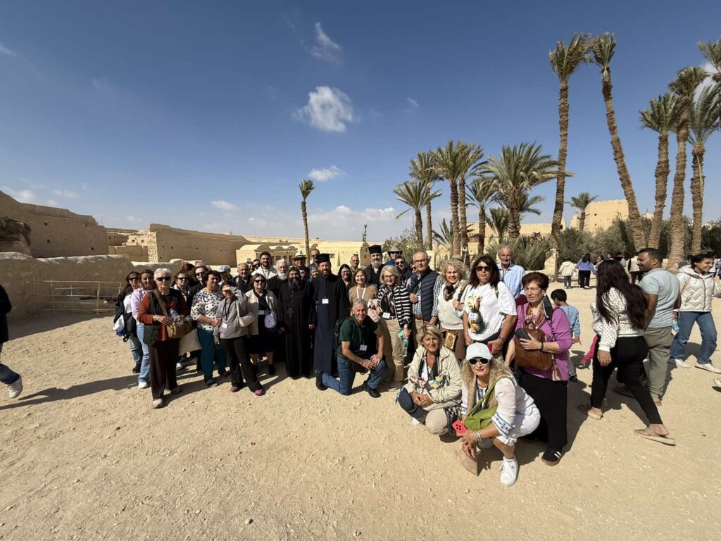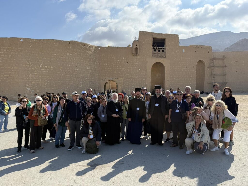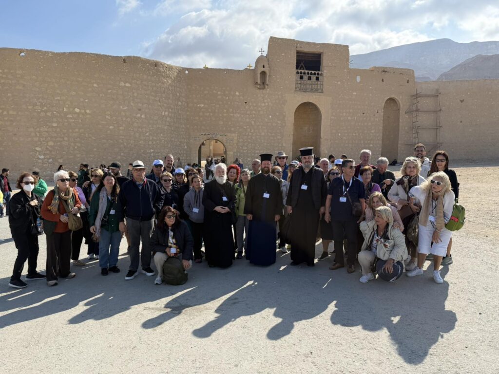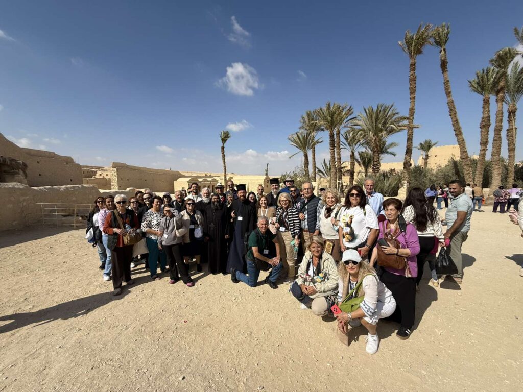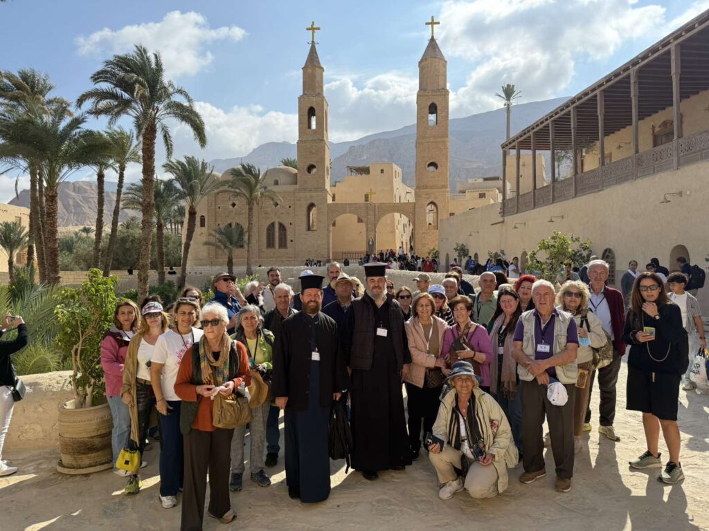 Στην σημερινή Προσκυνηματική με τους προσκυνητές μας επισκεφτήκαμε την Ιστορική Μονή του Μεγάλου Αντωνίου στην έρημο κοντά στην Ερυθρά Θάλασσα. Οι προσκυνητές μας ξεναγήθηκαν και προσκύνησαν τον Ναό στον οποίο φυλάσσεται ο Τάφος του Μεγάλου Αντωνίου και ξεναγήθηκαν στο Ιερό Ναό καθώς και το μοναδικό τόπο που αναβλύζει το Αγίασμα από την εποχή του Αγίου Αντωνίου, στο τέλος περάσαμε στην παλαιά τράπεζα της Ιεράς Μονής για να δούμε την πρώτη και αρχαιότερη τράπεζα της Ιεράς Μονής . Αφού ολοκληρώθηκε το προσκύνημά μας, ακολούθησε η προγραμματισμένη επίσκεψη στην επίσης Ιστορική Εκκλησία του Αγίου Νικολάου στο Ιστορικό Κέντρο του Καΐρου. Οι προσκυνητές μας έμειναν ενθουσιασμένοι από την εξαιρετική φιλοξενία και τα καρδιακά λόγια του πολύ αγαπητού πατριαρχικού επιτρόπου Σεβασμιωτάτου Μητροπολίτου κ.κ. Στεφάνου, ο οποίος αφενός μας ενθουσίασε με τα καρδιακά λόγια του και αφετέρου μας άνοιξε να προσκυνήσουμε μέρος – από τμήμα των χαριτόβρυτων λειψάνων του Αγίου Νεκταρίου Επισκόπου Πενταπόλεως του Θαυματουργού ο οποίος μάλιστα χειροτονήθηκε και έζησε ως Μητροπολίτης στην Εκκλησία του Αγίου Νικολάου Καΐρου. Εκεί προσκυνήσαμε και την οικεία στην οποία έζησε ο Άγιος Νεκτάριος και μάλιστα το Πατριαρχείο Αλεξανδρείας έχει και Ιερό Παρεκκλήσιο αφιερωμένο προς τιμήν του Αγίου Νεκταρίου του Θαυματουργού μας!!!! Τις επόμενες ημέρες οι προσκυνητές μας θα μεταβούν στην Ιστορική Σεβάσμια Ιερά Μονή Του Θεοβάδιστου Όρους Σινά.