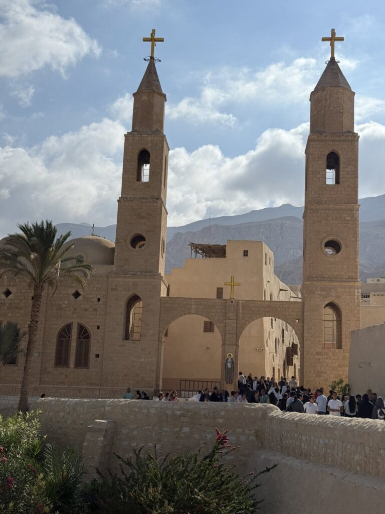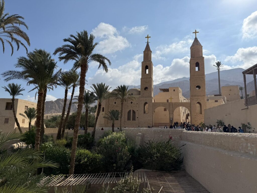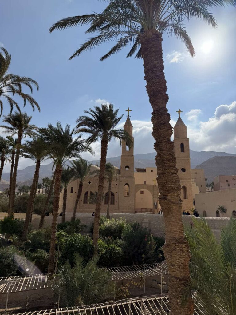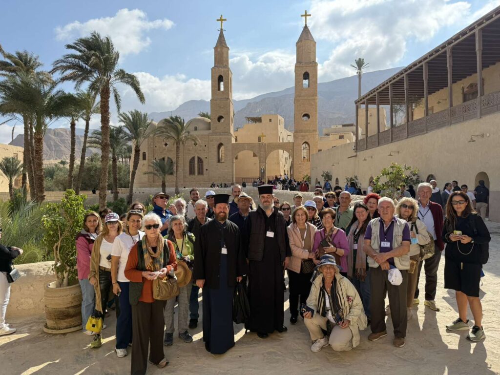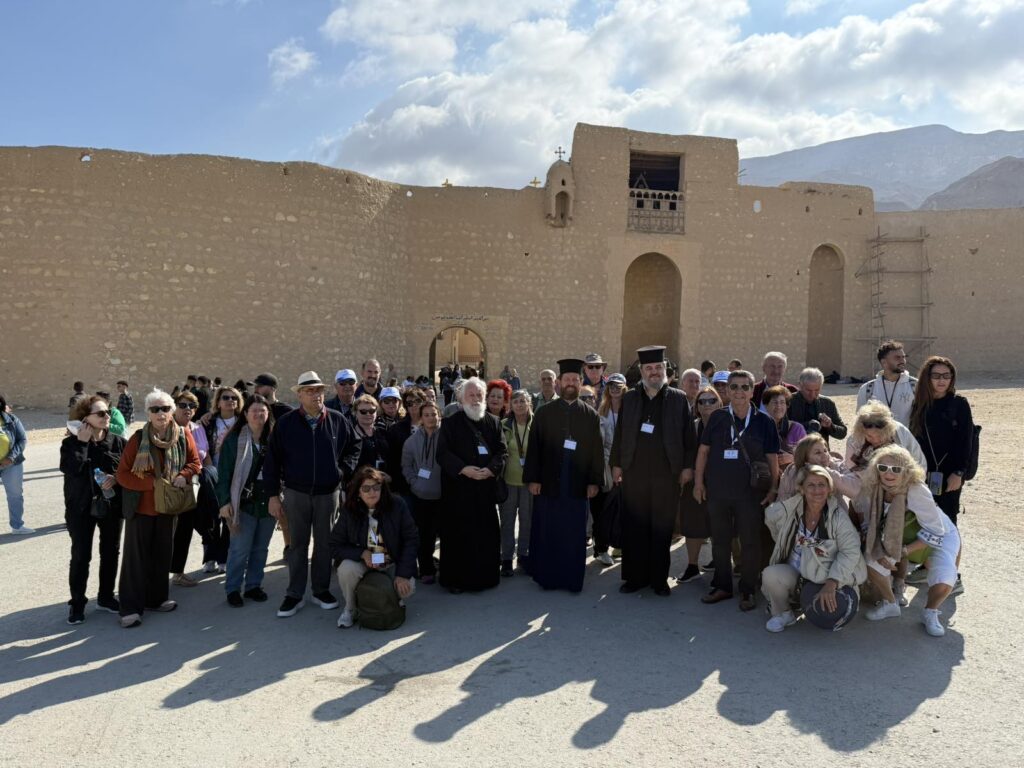 Στην σημερινή Προσκυνηματική με τους προσκυνητές μας επισκεφτήκαμε την Ιστορική Μονή του Μεγάλου Αντωνίου στην έρημο κοντά στην Ερυθρά Θάλασσα. Οι προσκυνητές μας ξεναγήθηκαν και προσκύνησαν τον Ναό στον οποίο φυλάσσεται ο Τάφος του Μεγάλου Αντωνίου και ξεναγήθηκαν στο Ιερό Ναό καθώς και το μοναδικό τόπο που αναβλύζει το Αγίασμα από την εποχή του Αγίου Αντωνίου, στο τέλος περάσαμε στην παλαιά τράπεζα της Ιεράς Μονής για να δούμε την πρώτη και αρχαιότερη τράπεζα της Ιεράς Μονής . Αφού ολοκληρώθηκε το προσκύνημά μας, ακολούθησε η προγραμματισμένη επίσκεψη στην επίσης Ιστορική Εκκλησία του Αγίου Νικολάου στο Ιστορικό Κέντρο του Καΐρου. Οι προσκυνητές μας έμειναν ενθουσιασμένοι από την εξαιρετική φιλοξενία και τα καρδιακά λόγια του πολύ αγαπητού πατριαρχικού επιτρόπου Σεβασμιωτάτου Μητροπολίτου κ.κ. Στεφάνου, ο οποίος αφενός μας ενθουσίασε με τα καρδιακά λόγια του και αφετέρου μας άνοιξε να προσκυνήσουμε μέρος – από τμήμα των χαριτόβρυτων λειψάνων του Αγίου Νεκταρίου Επισκόπου Πενταπόλεως του Θαυματουργού ο οποίος μάλιστα χειροτονήθηκε και έζησε ως Μητροπολίτης στην Εκκλησία του Αγίου Νικολάου Καΐρου. Εκεί προσκυνήσαμε και την οικεία στην οποία έζησε ο Άγιος Νεκτάριος και μάλιστα το Πατριαρχείο Αλεξανδρείας έχει και Ιερό Παρεκκλήσιο αφιερωμένο προς τιμήν του Αγίου Νεκταρίου του Θαυματουργού μας!!!! Τις επόμενες ημέρες οι προσκυνητές μας θα μεταβούν στην Ιστορική Σεβάσμια Ιερά Μονή Του Θεοβάδιστου Όρους Σινά.