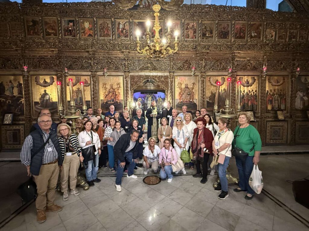 Ολοκληρώθηκε την Πέμπτη 16 Οκτωβρίου 2025 η μονοήμερη Προσκυνηματική εκδρομή στην Ιερά Μονή Κοιμήσεως Θεοτόκου Σκαραμαγκά και στον Ιερό Ναό Αγιου Νικολαου Περάματος. Μετά την τέλεση του Εσπερινού και της Παράκλησης στην Ιερά Μονή όπου υπάρχει αντίγραφο της Ιεράς Εικόνας του Πανορμίτη, η Γερόντισσα Νεκταρία μίλησε στους ευλαβείς προσκυνητές στο Αρχονταρίκι της Μονής. Στη συνέχεια επισκεφθήκαμε τον Ιερό Ναό Αγίου Νικολάου Περάματος όπου ο προϊστάμενος του Ιερού Ναού π. Γρηγόριος προσέφερε κέρασμα στους παρευρισκόμενους. Ο π. Κωνσταντίνος ευχαρίστησε για την θερμή φιλοξενία τόσο την Γερόντισσα Νεκταρία όσο και τον π. Γρηγόριο καθώς επίσης και τους ενορίτες μας που με τα Ιερά Προσκυνήματα μετέχουν στον συμπνευματισμό και την τόνωση της πίστεώς μας.